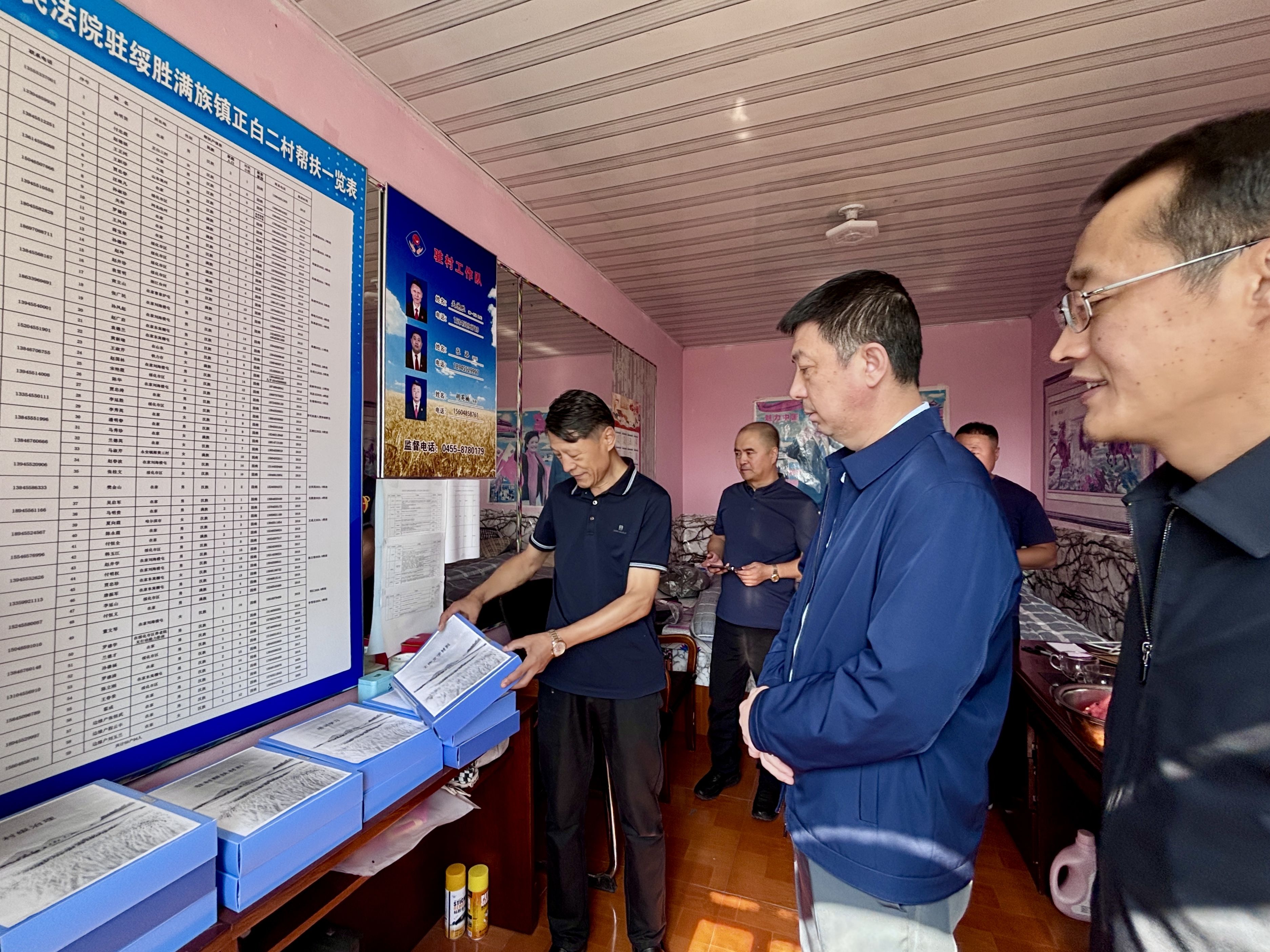 为进一步做好驻村帮扶工作,切实关心关爱驻村干警,9月23日,绥化市北林区人民法院党组书记、代院长刘立斌深入绥胜满族镇正白二村区法院乡村振兴驻村工作队看望驻村干警,绥胜满族镇党委书记苏阳,绥化市北林区人民法院党组副书记、副院长刘阿东,党组成员、政治部主任刘宝琦等陪同。