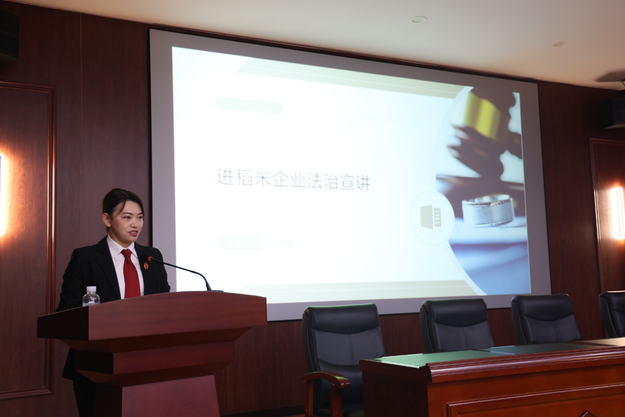 在“送法进企”宣讲会上,结合稻米产业典型案例,北林区人民法院民事审判一庭副庭长刘晓红从商事缔约风险和企业运营风险的角度,以“法条+案例+实操建议”的形式,讲解警示合同订立和企业印章管理的注意事项,进一步强化企业风险防范意识,实现了司法服务与企业需求的精准对接。法治宣讲会现场,北林区人民法院向部分企业职工代表赠送《中华人民共和国民法典》。