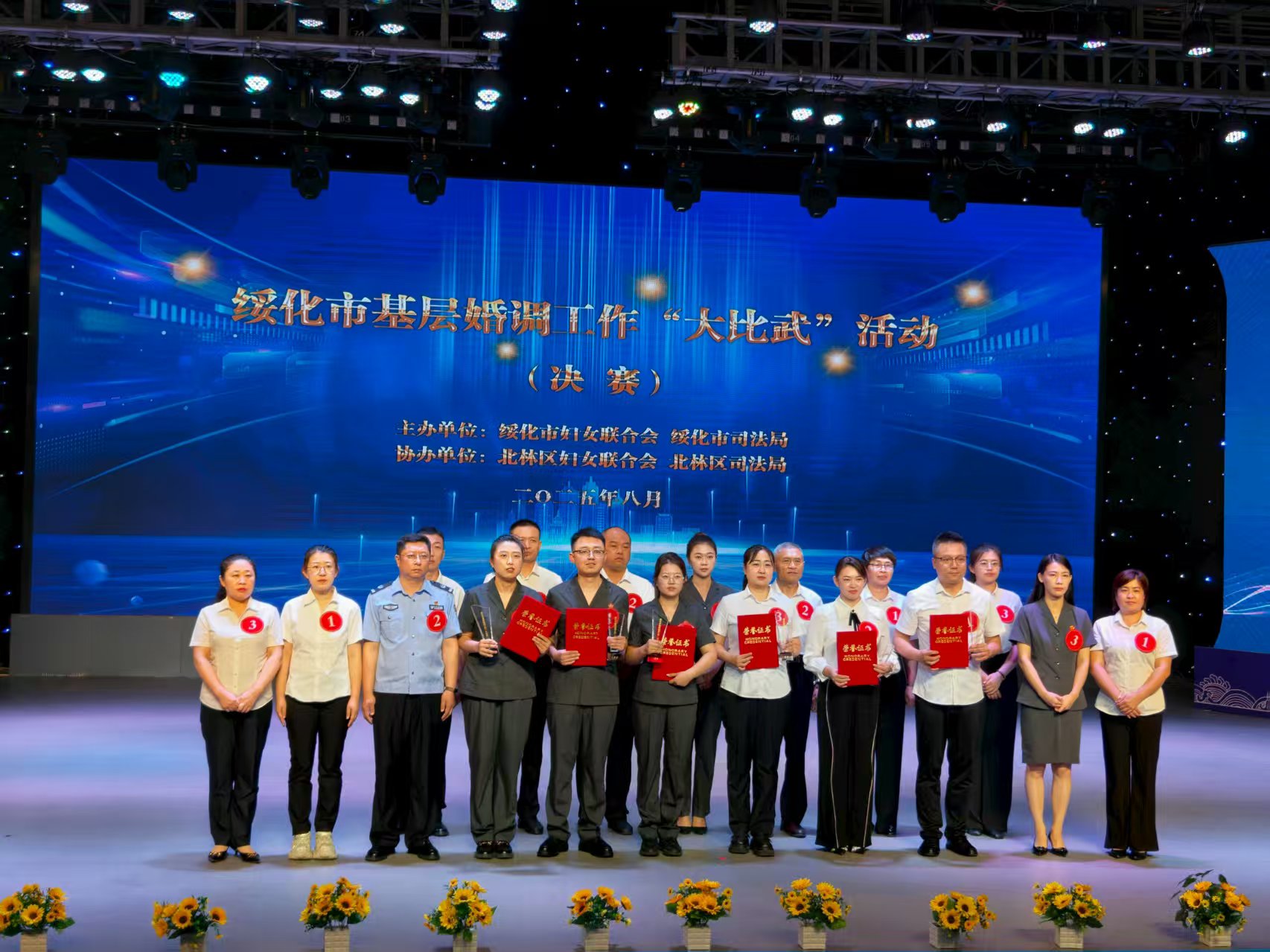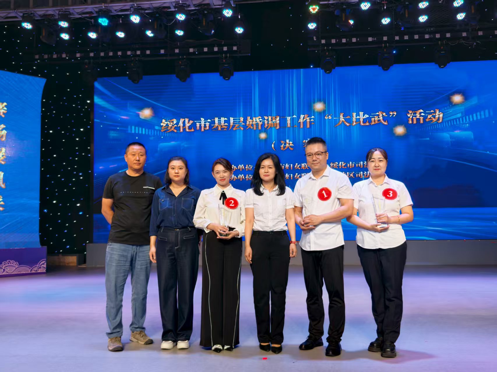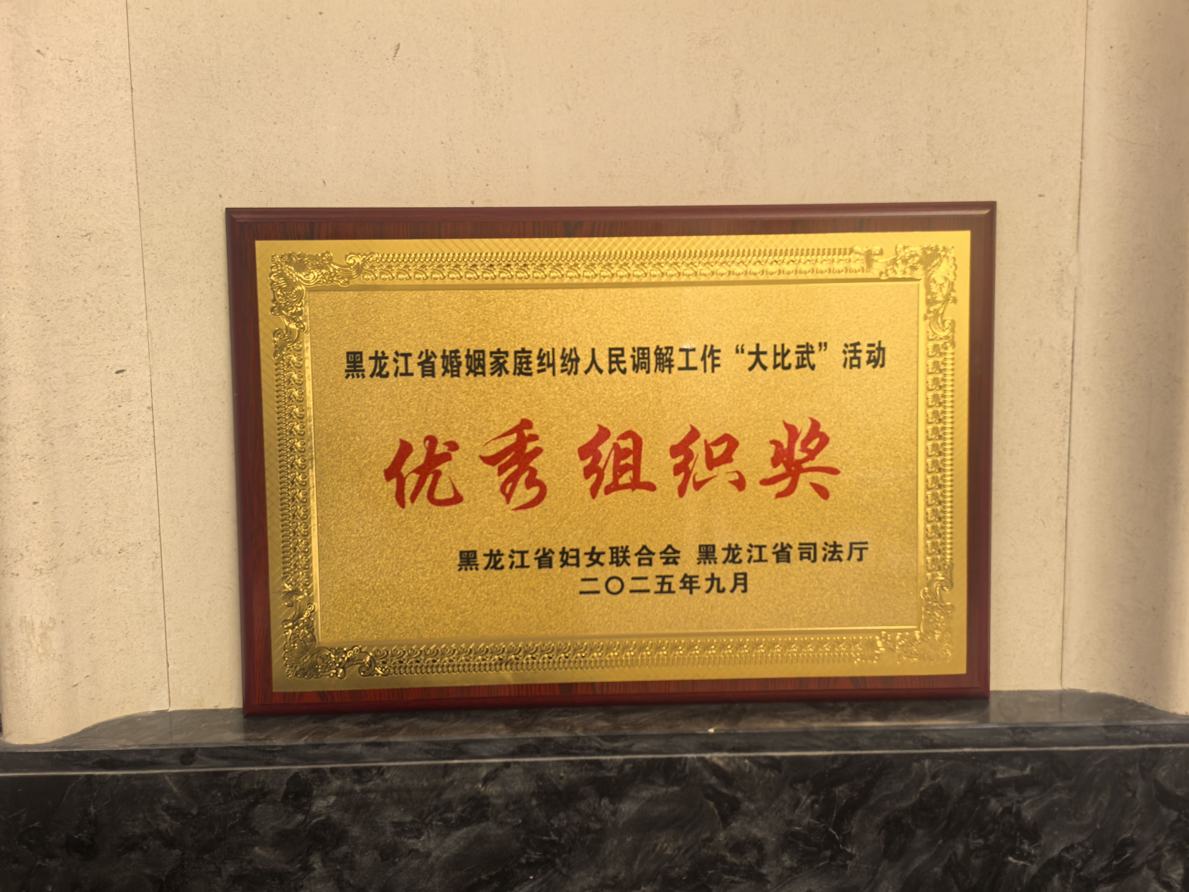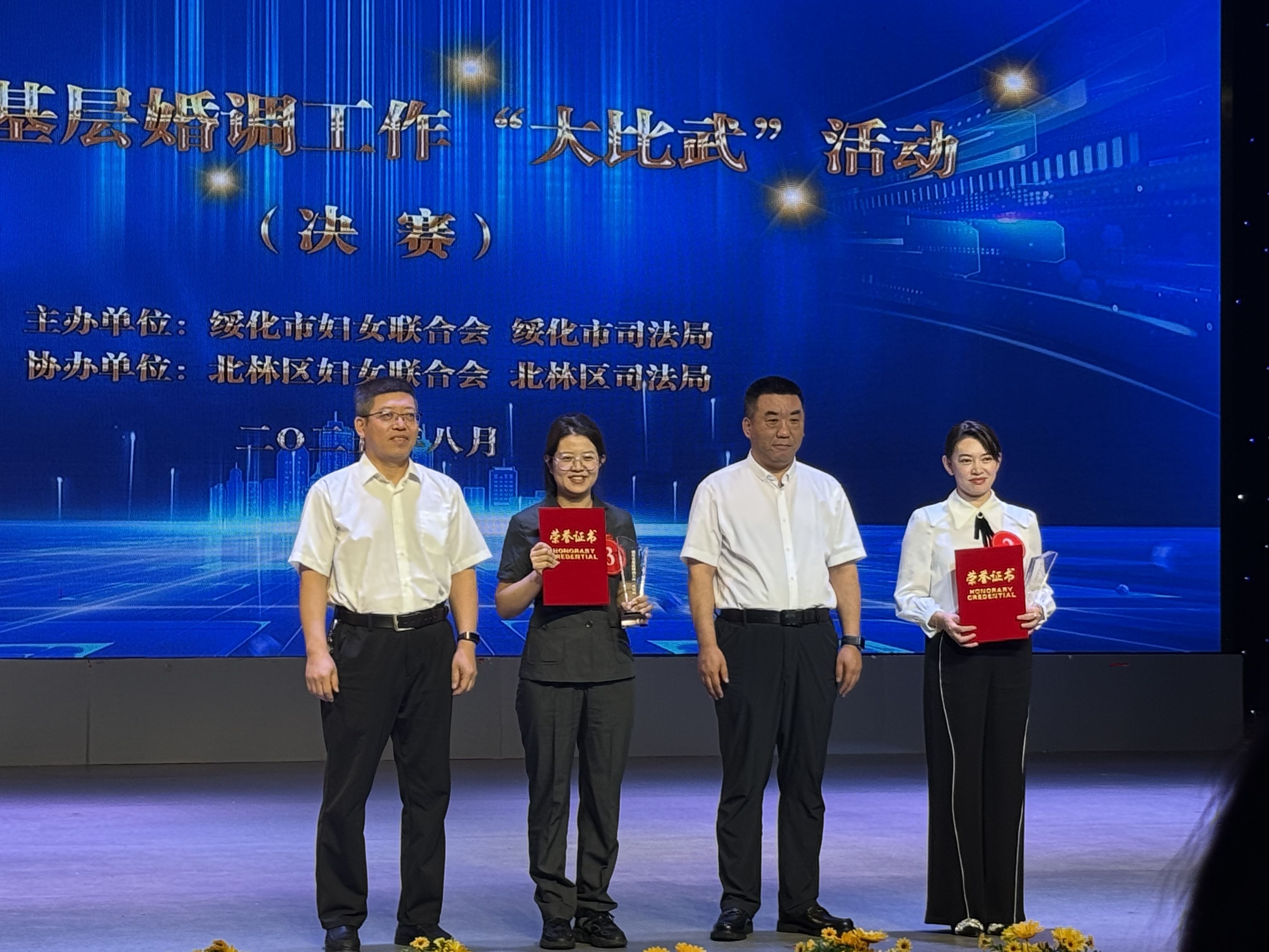 凭借在市级“大比武”中的亮眼表现,刘晓红脱颖而出,作为绥化市代表队的核心成员,参加了黑龙江省妇联与省司法厅联合举办的黑龙江省婚调“大比武”活动。全省婚调“大比武活动”有全省13个市(地)的13支代表队、39名选手参加,比赛设置笔试考察、知识竞答、模拟调解三大环节,构建“理论筑基—应变提速—实战锤炼”的全维度考核体系。大赛最终评选出团体优秀奖及一、二、三等奖。
