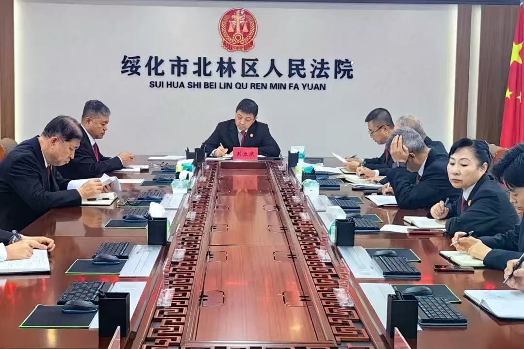 10月31日,绥化市北林区人民法院召开党组(扩大)会议,传达学习党的二十届四中全会精神,研究贯彻落实意见。绥化市北林区人民法院党组书记、代院长刘立斌主持会议并讲话。