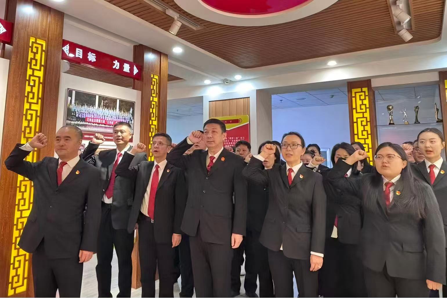 活动中,全体党员重温了入党誓词。党员干警面向党旗,高举右拳,誓言铿锵,神情肃穆,一句句庄严的承诺,再次点燃了每一位党员爱党敬业、忠诚履职的激情。