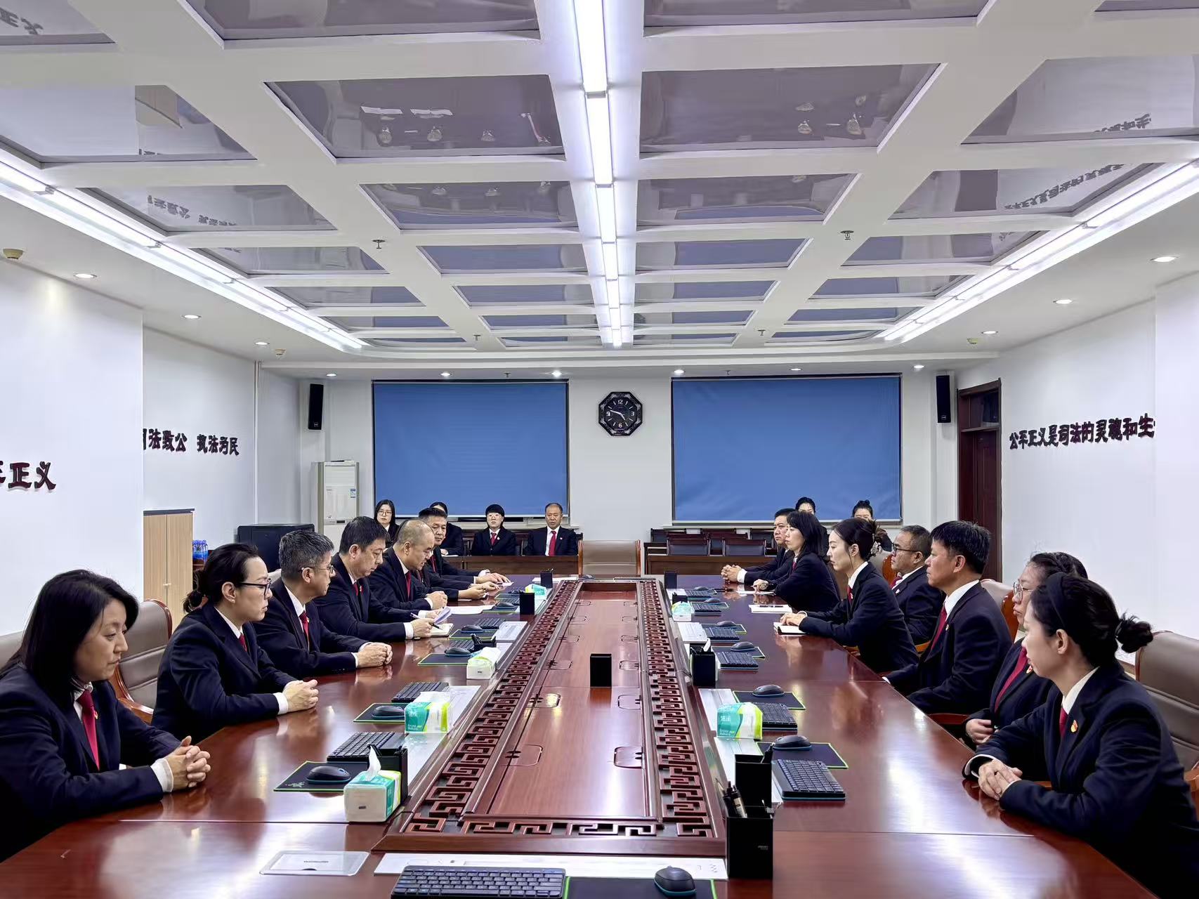 随后党支部书记领学《习近平谈治国理政》第五卷重要篇章,讲解习近平总书记关于法治建设的重要论述,引导党员干警深刻理解其内涵和意义,并强调学习《习近平谈治国理政》第五卷的重要意义。书记领学后党员干警围绕学习内容,结合自身工作岗位展开了热烈讨论。