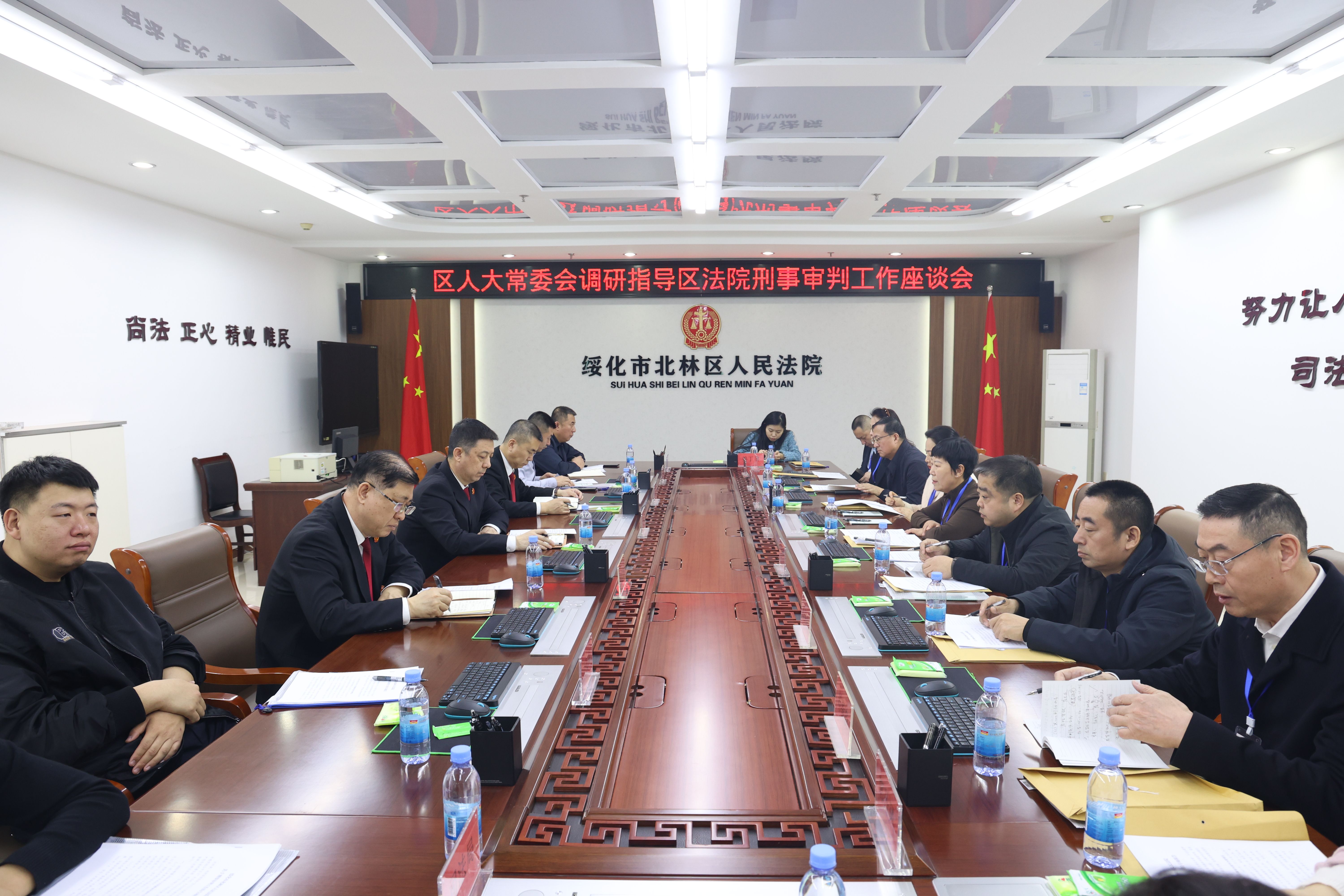 座谈会上,刘立斌对北林区人大及其常委会长期以来的关心、支持和监督法院工作表示诚挚感谢,并详细汇报了法院近三年以来刑事审判工作开展情况、存在的不足和下一步工作计划。调研组对北林区人民法院依法履职、严惩刑事犯罪、维护社会稳定等工作给予充分肯定,认为北林区人民法院紧扣中心、服务大局,担当作为、司法为民,为平安北林、法治北林提供坚实司法保障,并就下一步工作提出意见建议。
